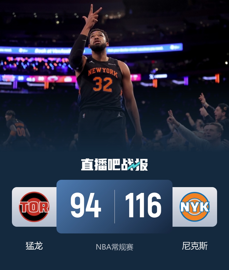 比赛上来,尼克斯就展示出了火热的外线手感,尤其是麦克布莱德开场四分钟就连中四记三分球,分差迅速就达到两位数,节末更是突破二十分,次节猛龙的外线也开了,他们连中四记三分球迫近比分,半场结束时分差仅剩7分;下半场回来,两队短暂拉锯后尼克斯再次发力,分差又是直逼二十分,末节比赛已经彻底失去悬念,分差再次突破二十分,最终尼克斯大胜猛龙迎来四连胜。