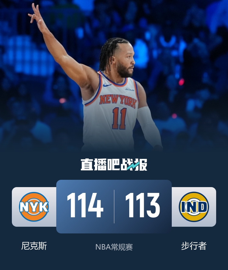 比赛开始,双方上来都比较慢热,步行者首发五虎轮番发力迅速建立双位数领先,布伦森攻防苦苦支撑,首节步行者领先11分,次节尼克斯上来8-2追分,双方展开拉锯战,布伦森联手克拉克森一度追到差1分,但内姆哈德能回应,半场步行者还领先3分。下半场,尼克斯进攻端又断电,打了8分钟还未上双,马瑟林连续取分带领步行者扩大领先,但布里奇斯连砍8分再追到差6分,末节尼克斯上来11-2直接反超,好在西亚卡姆里突外投连砍7分带队稳住优势,阿努诺比关键三分再追平,最后时刻西亚卡姆造杀伤领先2分,布伦森三分绝杀,最终尼克斯114-113险胜步行者,拿到6连胜。